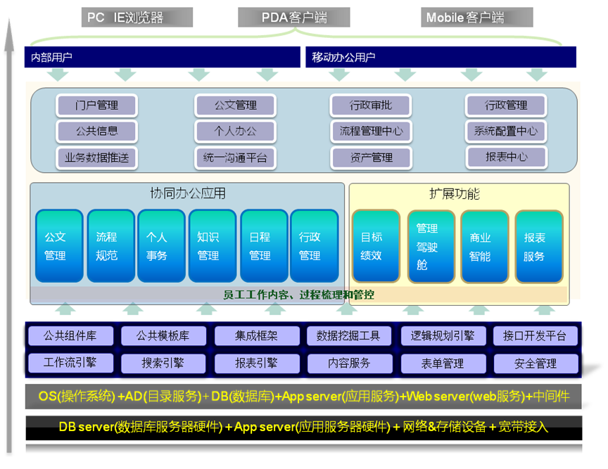n 开放性和可扩展能力:业务协作平台是无需编程的开放式平台,用户可以完成行政单位门户建设、门户管理与维护、流程定义和管理、协作商务应用等; 安全认证:支持128bit SSL、64bit SSL、 PKI 。